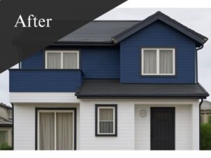 実は外壁の色は2色!ツートンカラーの仕上がりになります!ブルー×ホワイトで爽やかな外観に仕上げていきました♪