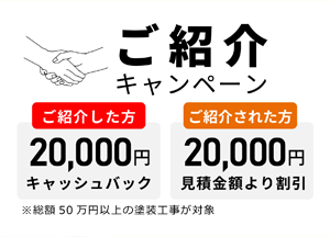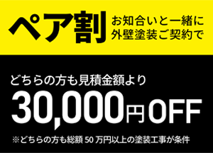 ①外壁+屋根セット割 ②紹介割orペア割 ③口コミ投稿特典